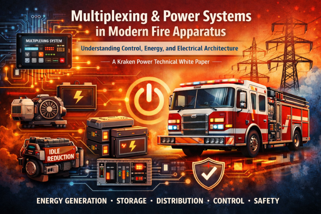 Kraken Power systems are designed to work alongside existing multiplex architectures, forming the electrical backbone that modern fire apparatus increasingly require.